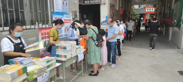 教材發(fā)放前,教導(dǎo)處和后勤成員及各位班主任老師,提前將各個(gè)年級(jí)、各個(gè)學(xué)科的教材逐一整理,打包分類(lèi)。每份教材擺放有序,靜待家長(zhǎng)朋友們的到來(lái)。發(fā)書(shū)期間,每位家長(zhǎng)做到佩戴口罩,排隊(duì)間隔1米以上,先消毒再登記,即領(lǐng)即走,將停留時(shí)間降低到最短。在大家的共同努力下,整個(gè)教材發(fā)放過(guò)程井然有序,動(dòng)作迅速。