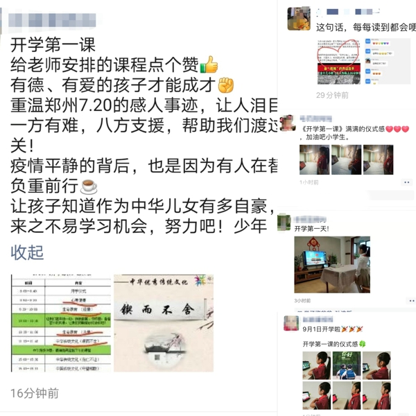 新學期中華美德教育,通過重溫“七一”重要講話精神,師生暢談疫情與汛情期間的感人英雄事跡,鍥而不舍、當仁不讓、守望相助,這些詞語貫穿《開學第一課》所有課程的始終。這些中華民族的傳統(tǒng)美德在傳承中發(fā)展、在傳承中沉淀,筑成新時代中國出彩少年成長的基石。