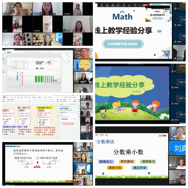 數(shù)學組結(jié)合學生年齡特點及課堂實際情況,交流線上教學經(jīng)驗。利用課前三分鐘,調(diào)動學生的積極性;以問題為導向,激發(fā)學習的興趣;豐富作業(yè)類型,引導學生自主創(chuàng)新;利用在線答疑,診斷學習情況;創(chuàng)新評價方式,聚焦學習效果。