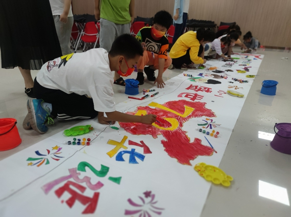 隨后,每個家庭都懷著激動的心情進(jìn)行繪畫創(chuàng)作,孩子們在父母的幫助下把對祖國的美好祝愿用線條繪制在畫布上,畫出色彩斑斕的汽氣球、彩旗、長城、天安門,表達(dá)自己對偉大祖國的熱愛和真切祝福。繪制完畢后,大家一起參觀紅色文化走廊,了解中國社會主義發(fā)展史和科技方面的輝煌成就。