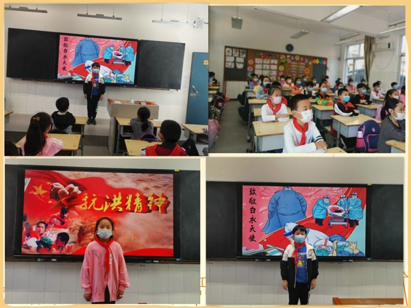 活動中,隊員們共同參與講述黨史故事,探尋黨的故事,感悟黨的初心,并通過講述抗洪、防疫“車輪戰(zhàn)”“雙線站”中“天使白”“消防橙”等沖鋒一線的動人故事,為黨獻上一份真摯的賀禮。輔導員孟祥利老師分階段講述了黨的歷史和共產黨的奮斗歷史,并讓少先隊員們交流心得,讓他們堅定自己的理想、堅定自己的愛國心。少先隊員們認真聆聽黨史故事,充分了解先烈事跡,增強少先隊員們的愛國熱情和奮斗熱情。