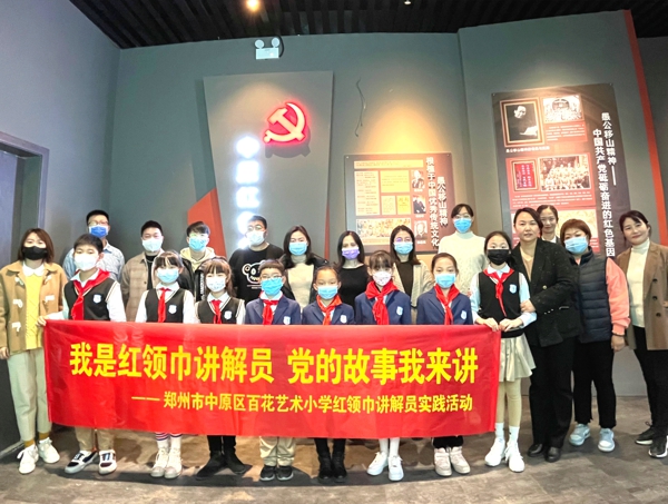 中新河南網(wǎng)12月16日電(通訊員李雪)為配合“雙減”政策,推動(dòng)社會(huì)少先隊(duì)建設(shè),形成“場(chǎng)館+學(xué)校”的校內(nèi)外少先隊(duì)組織體系,鄭州市中原區(qū)百花藝術(shù)小學(xué)紅領(lǐng)巾講解員們?cè)谳o導(dǎo)員老師的帶領(lǐng)下,于12月14日下午來到河南省圖書館,和這里的團(tuán)員哥哥姐姐們一起走進(jìn)“百年榮耀·中原印記——中國(guó)共產(chǎn)黨百年華誕”紅色文化中原展廳,跟著“金牌”講解員學(xué)講黨的故事。