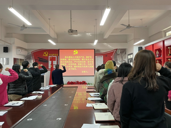 活動最后,全體黨員教師重溫入黨誓詞。面向鮮紅的中國共產(chǎn)黨黨旗,鏗鏘有力的宣誓聲響徹會議室。讓我們牢記入黨誓詞,不斷叩問初心、守護初心,不斷堅守使命、擔當使命,始終做到初心如磐、使命在肩。