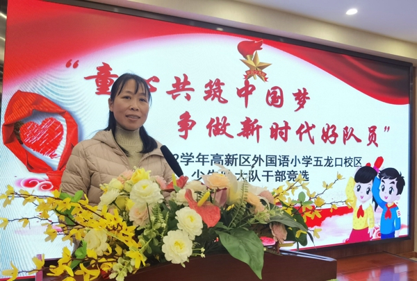 候選人競選結(jié)束,副校長于艷麗對本次活動進行了總結(jié),和隊員們進行了互動,并對新進隊員做出殷切的期望。