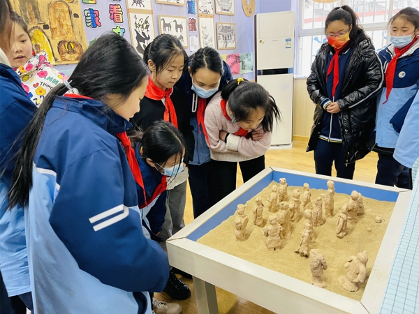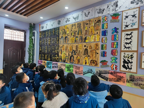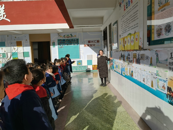 活動(dòng)中,孩子們?cè)诶蠋煹膸ьI(lǐng)下分別到各個(gè)不同展區(qū)欣賞各具特色的作業(yè)展示,大家欣賞著自己身邊同學(xué)的優(yōu)秀作業(yè),情不自禁的笑容與頻頻不住的點(diǎn)頭流露出他們對(duì)展出作業(yè)的喜愛(ài)與贊美。參觀魅力新疆吐魯番板塊中的作品時(shí),三三班黃崢說(shuō):“我真是太喜歡了,新疆的美景讓我充滿向往,長(zhǎng)大后一定要去游覽一番。”