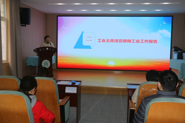會(huì)議在莊嚴(yán)的國歌聲中拉開了帷幕。南學(xué)街小學(xué)工會(huì)主席遆婭娜首先分別從后勤工作、安全工作、工會(huì)工作等方面做了工會(huì)年度工作總結(jié),她充分肯定了2021年工會(huì)工作取得的成績,并表示工會(huì)工作要繼續(xù)堅(jiān)持以規(guī)范化為目標(biāo),推動(dòng)各項(xiàng)制度和相關(guān)機(jī)制進(jìn)一步完善,繼續(xù)堅(jiān)持以考核為抓手,加強(qiáng)工會(huì)組織建設(shè),全面推進(jìn)工會(huì)工作高質(zhì)量發(fā)展。