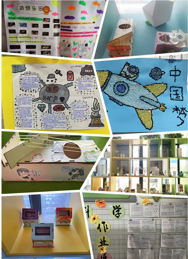 本次校園科技作品展示活動學生參與面廣,六個年級的學生全體積極參與,各年級科學老師周密安排,帶領學生精心設計,確保這次活動的順利開展?茖W教研組經(jīng)過研討,對各年級科學作業(yè)進行了統(tǒng)籌布置:1.一二年級以學生動手做實驗為主,課堂上學生對實驗結果進行匯報;2.三四年級布置學生以單元主題為內容,對科學探究的過程進行梳理,制作思維導圖,制作科學小報。3.五六年級組織學生,針對課堂探究的科學成果進行規(guī)范地記錄,形成科學筆記,記錄科學知識。