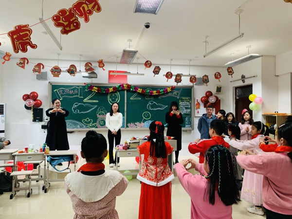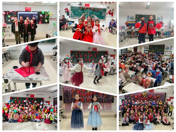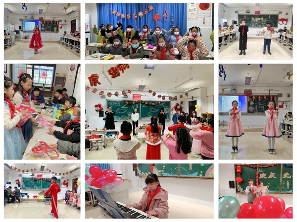 為落實上級疫情防控的相關要求,此次匯演,由各班老師組織學生在各自班級內進行。匯演開始前,學校給學生布置了一項手工實踐作業(yè),讓學生為此次匯演制作迎新的裝飾品及祝福賀卡,各班老師帶領同學們用學生精心制作的裝飾品一起布置教室,一個個教室被“裝扮”得喜氣洋洋,新年味兒越來越濃。