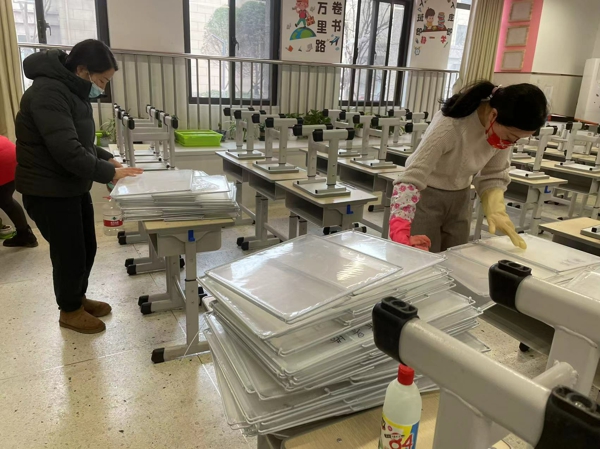 在校園清掃過程中,校區(qū)教職員工及家長志愿者一同對教室、樓道、走廊、功能室等區(qū)域進行了全面的清理消殺。對清掃范圍內(nèi)的地面、瓷磚、死角等進行了細致打掃和清理,在廁所、洗手池、飲水設(shè)備等重點區(qū)域的打掃中更是著重打掃和消殺,保障清掃工作不留死角,不留盲點。全面的清掃也使校園面貌煥然一新。