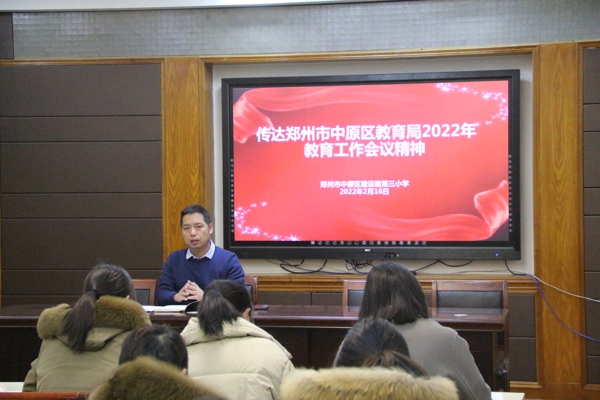 校長(zhǎng)師振國(guó)傳達(dá)中原區(qū)2022年教育工作精神