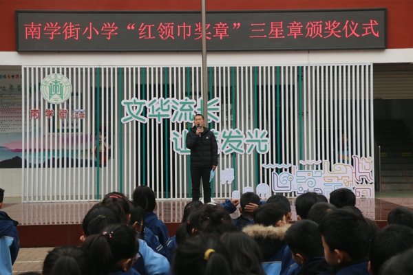 中新河南網(wǎng)3月1日電(吳勇強)2月28日,管城區(qū)南學(xué)街小學(xué)在升旗儀式上舉行了“紅領(lǐng)巾獎?wù)?rdquo;三星章頒獎儀式。