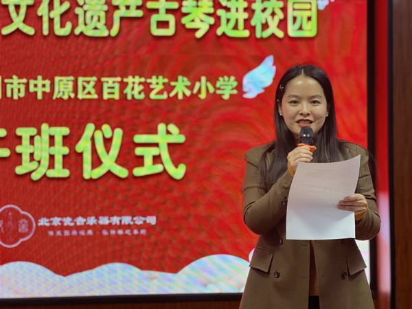 中新河南網(wǎng)3月3日電(吳勇強(qiáng)張歡)為了讓學(xué)校教師感受中國(guó)傳統(tǒng)文化的魅力,了解世界非遺傳承、古琴文化的價(jià)值,由中國(guó)傳統(tǒng)文化促進(jìn)會(huì)古琴研究分會(huì)、蘭考民族樂(lè)器小鎮(zhèn)管委會(huì)指導(dǎo),北京瓷音樂(lè)器有限公司具體執(zhí)行的“世界非物質(zhì)文化遺產(chǎn)古琴藝術(shù)進(jìn)校園”活動(dòng)開(kāi)班儀式于3月1日下午在鄭州市中原區(qū)百花藝術(shù)小學(xué)如期舉行。