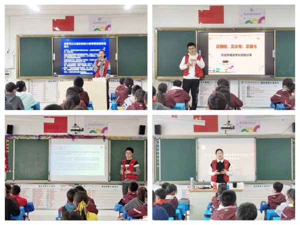 清華大學(xué)保送生李祎琪同學(xué)的“目標(biāo)”專題,讓同學(xué)們明白每個人的成長并非一蹴而就,在不同的成長階段要設(shè)立不同的小目標(biāo)并為之努力,最終實現(xiàn)自我超越。清華大學(xué)保送生李嘉澍同學(xué)帶來“方向”專題,他分享了從小學(xué)到高中,總是在不斷分析自己的優(yōu)勢為自己尋找方向,讓同學(xué)們知道從現(xiàn)在起就要“瞄準(zhǔn)終點”、優(yōu)化方法、砥礪前行。北京大學(xué)保送生王靖涵同學(xué)圍繞“方法”專題,重點分享了自己在學(xué)習(xí)英語過程中的經(jīng)驗與感悟,介紹了如何提升英語的“聽說讀”技能,同學(xué)們結(jié)合自己的學(xué)習(xí)方法碰撞出“智慧火花”。上海交通大學(xué)保送生陳沛寧同學(xué)帶來“平衡”專題,她告訴同學(xué)們要平衡好學(xué)業(yè)和活動的關(guān)系,其實,積極參加學(xué)校社團(tuán)和班級活動,在豐富多彩的活動中能夠開闊眼界,鍛煉能力,并促進(jìn)學(xué)業(yè)發(fā)展。