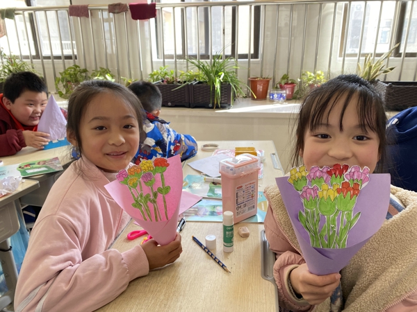 學(xué)生們制作“康乃馨”送給媽媽
