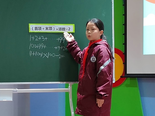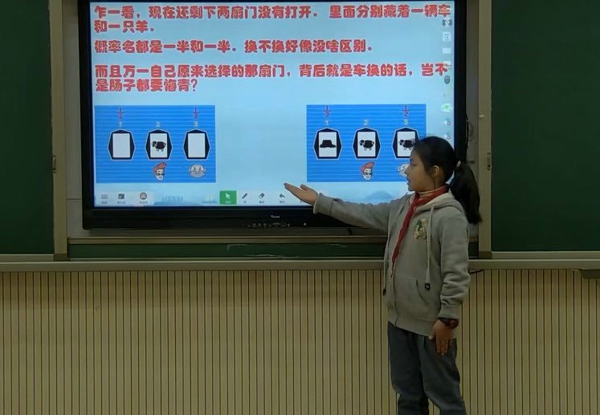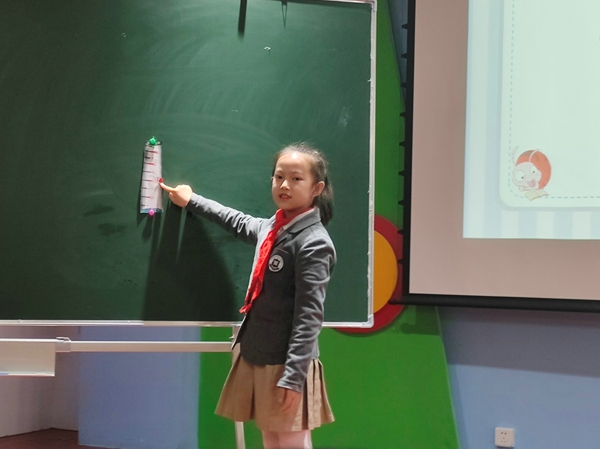 一年級董若希同學(xué)帶領(lǐng)大家領(lǐng)略《馬小跳玩數(shù)學(xué)》中經(jīng)典的數(shù)學(xué)故事《采松果的小松鼠》。二年級徐子越同學(xué),生動有趣地講述了胖子“0”與瘦子“1”的趣味與神奇。三年級的袁夢同學(xué)通過切蘋果,直觀展示了分數(shù)平均分的過程。四年級的馮品賀同學(xué)在亡羊補牢的故事中,感悟到三角形具有穩(wěn)定性,平行四邊形不穩(wěn)定。五年級王沛雯同學(xué)將生動美妙的故事導(dǎo)入數(shù)學(xué)元素,帶來了一場奇妙的數(shù)學(xué)之旅。六年級的柳驍睿同學(xué)為大家講述了笛卡爾浪漫的心形線故事。