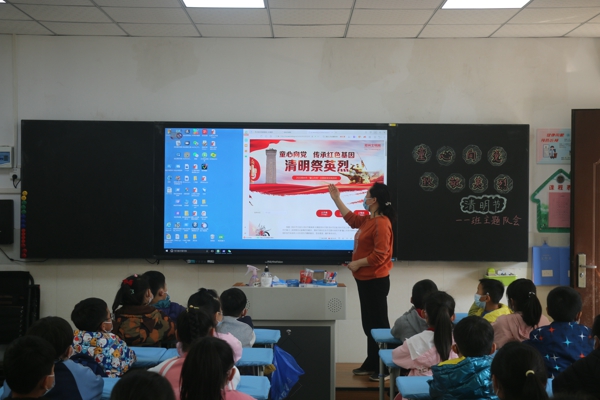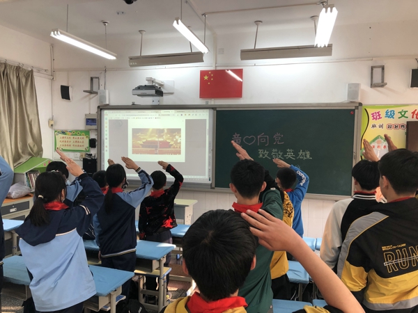 隊(duì)會課上,各中隊(duì)輔導(dǎo)員向隊(duì)員們介紹了清明節(jié)的由來和習(xí)俗,同時(shí)講述了董存瑞、邱少云、劉伯承、狼牙山五壯士等英雄的愛國主義事跡。“今天的幸福生活是無數(shù)革命先烈拋頭顱、灑熱血用生命換來的,我們應(yīng)該努力學(xué)習(xí),為將來建設(shè)祖國做貢獻(xiàn)。”五(3)班商子墨激動地說道。二(1)中隊(duì)輔導(dǎo)員劉廣勇向隊(duì)員們講道:“愛國是奉獻(xiàn)的實(shí)質(zhì)和核心。雖然我們身處和平年代,無法體會戰(zhàn)爭的困苦與磨難,但我們?nèi)圆荒芡洑v史,在中華民族面臨危難的時(shí)候,是先烈們挺身而出,把滿腔的熱血灑遍祖國的大地,我們要向他們致敬。”