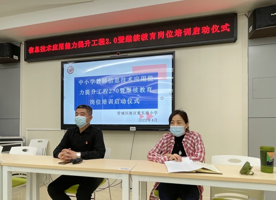 中新河南網(wǎng)4月7日電(吳勇強)為推進學(xué)校信息化教學(xué)水平整體發(fā)展,構(gòu)建教師信息技術(shù)創(chuàng)新應(yīng)用支持發(fā)展體系,提升教師信息技術(shù)應(yīng)用能力,2022年4月7日,鄭州市管城回族區(qū)紫東路小學(xué)舉行信息技術(shù)應(yīng)用能力提升工程2.0暨繼續(xù)教育崗位培訓(xùn)啟動儀式。