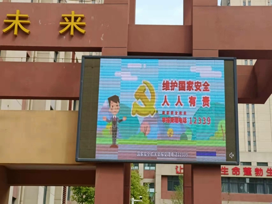 學校利用校園顯示屏進行國家安全宣傳教育,結合周一升旗儀式向全體師生進行《維護國家安全人人有責》的講話,增強師生安全意識,引領師生自覺履行維護國家安全,保守國家秘密的義務。
