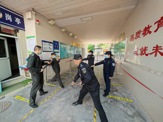 學(xué)校保安、巡防隊(duì)員聯(lián)合開展防暴恐演練