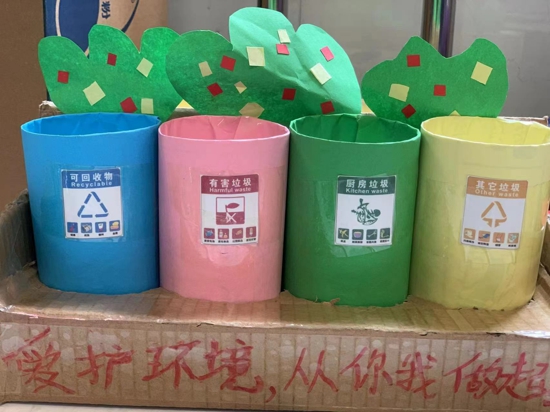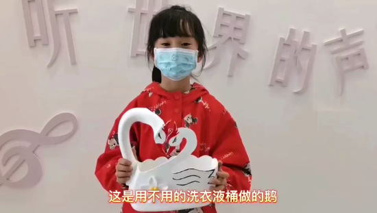 儀式上,一、一班向大家展示了“保護環(huán)境從廢物利用做起”主題微視頻。孩子們利用課余時間通過搜集資料,明確了廢物的危害,深刻感受到愛護環(huán)境、保護地球從現(xiàn)在做起的必要性。孩子們在家長的幫助下,把用完的紙盒裝飾一新當筆筒,把廢舊的宣傳海報折疊拼裝成美觀的收納盒、花瓶,把不用的報紙做成漂亮的衣服、玩具,用塑料瓶做成飛機……經(jīng)過創(chuàng)意,廢舊物品實現(xiàn)了華麗變身,變廢為寶。