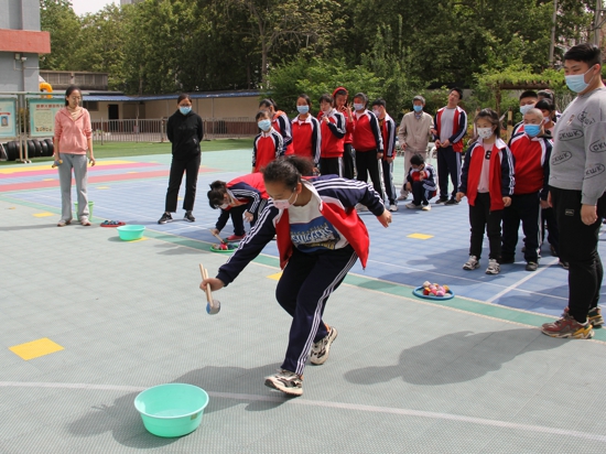 “沙包游戲”為不同年級的同學(xué)量身定做,考驗了低年級同學(xué)的身體協(xié)調(diào)能力和高年級同學(xué)的精細(xì)動作能力。“瞄準(zhǔn),發(fā)射……”小運動員們的精準(zhǔn)投射引起了陣陣歡呼。高年級運動員拿著鼓槌小心翼翼地把沙包從這個筐夾在另一個筐,動作熟練流暢,大家屏氣凝神,看地津津有味。