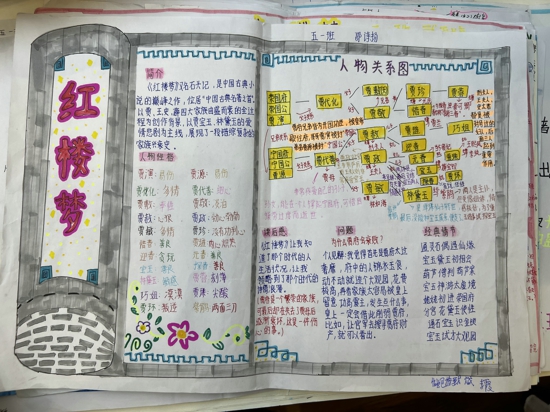 學(xué)生習(xí)作中隨處可見波浪線、圈圈點(diǎn)點(diǎn)等符號,感受到教師批改得細(xì)心,作文后及時(shí)給予鼓勵(lì)及針對性的修改建議,樹立了學(xué)生習(xí)作的信心。教師們整體意識得以凸顯——傳統(tǒng)節(jié)日手抄報(bào)、朵朵“花鐘”綻放異彩、一本本詩歌集、單元知識梳理等等。名著閱讀作業(yè)令人矚目,為助推學(xué)生參與閱讀,教師們挖苦心思,《西游記》人物關(guān)系思維導(dǎo)圖、《魯濱遜漂流記》漂流情節(jié)圖、整本書閱讀指導(dǎo)手冊......沒有做不到,只有想不到,不得不驚嘆老師們的作業(yè)設(shè)計(jì)的用心,教育教學(xué)中的精心。