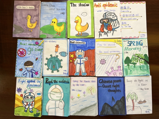 “EnjoyEnglish,EnjoyLife”孩子們結(jié)合所學(xué)知識,運(yùn)用豐富的語言制作出獨(dú)特的作業(yè):一張張精美的故事地圖,生動有趣的繪本故事迸發(fā)出孩子們的奇思妙想;風(fēng)格獨(dú)特的繪本、小報(bào),“繪”出故事,“讀”出風(fēng)采。