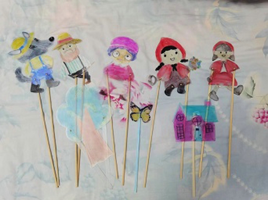 學(xué)習(xí)了軸對(duì)稱圖形之后,學(xué)生們盡情發(fā)揮自己的想象,憑借自己的智慧,通過(guò)折一折、畫一畫、剪一剪、貼一貼等形式,一個(gè)個(gè)精巧的構(gòu)想,一份份新穎的創(chuàng)意,一個(gè)個(gè)鮮活的皮影戲角色便躍然紙上。