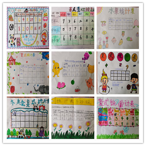 斐斯泰洛齊說過:“教學(xué)的主要任務(wù)不是積累知識,而是發(fā)展思維。學(xué)生的學(xué)習應(yīng)當是一個生動活潑的、主動的和富有個性的過程。”因此我們?nèi)昙墧?shù)學(xué)組的老師們在《復(fù)式統(tǒng)計表》這一單元學(xué)習結(jié)束后,帶領(lǐng)同學(xué)們開展了設(shè)計創(chuàng)意統(tǒng)計表的活動。