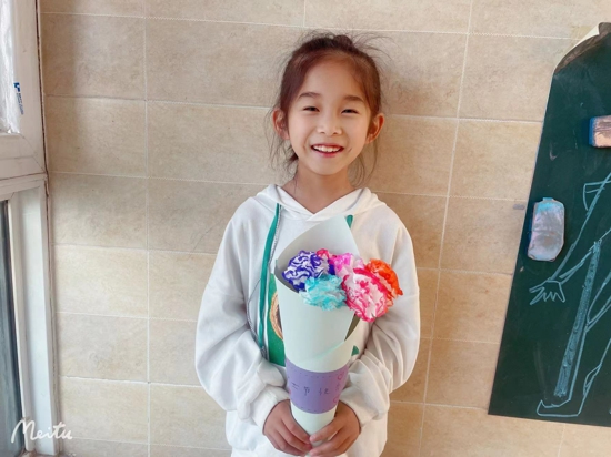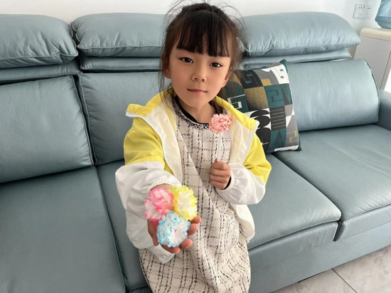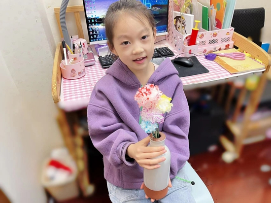 線上課堂中,在美術(shù)老師陳雨馨的帶領(lǐng)下,學(xué)生們通過使用家里的紙巾制作出一朵朵五彩繽紛的“康乃馨”,學(xué)生們還用吸管、卡紙做成花枝進行裝飾,讓這份特別的禮物更加精致。陳雨馨表示,學(xué)生居家線上學(xué)習(xí)期間,可能每天都會和醫(yī)務(wù)工作者接觸,也真真實實地感受到“大白”們的辛苦。在國際護士節(jié)到來之際,也想通過自己的課堂,讓學(xué)生們能夠?qū)⒆约簩τ诜酪咭痪的醫(yī)務(wù)人員的感謝與祝福用這種形式表達出來。