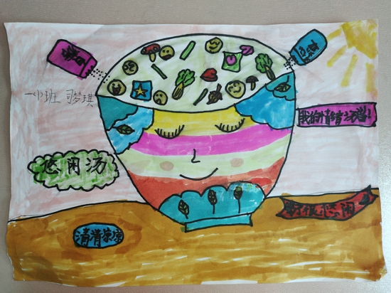 緊接著,王老師運用繪畫藝術(shù)心理輔導技能,使用貼近學生生活的方法,讓學生創(chuàng)作一碗屬于自己的情緒湯。通過寫湯的說明書梳理情緒,添加新的材料等步驟,使學生學會接納和轉(zhuǎn)化這些情緒。課程結(jié)束后,學生們通過圖片和視頻的方式在群里分享作品,分享自己課程學習的感受。“我通過畫畫表達了自己的情緒,很有意思,我也非常開心”。一二班許夢閩在群中分享道。