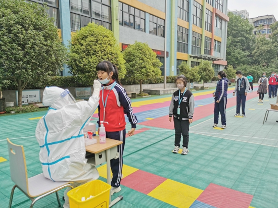 9點(diǎn),全校師生開始有序進(jìn)行核酸檢測(cè),經(jīng)歷過多輪核酸檢測(cè)后,學(xué)生們也越來越配合防疫人員的工作,張開嘴巴,大聲喊“啊”,整個(gè)檢測(cè)過程快速有序。
