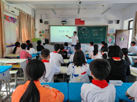 中新河南網(wǎng)5月19日電(吳勇強(qiáng))夏花開得正艷時(shí),莘莘學(xué)子回歸日。5月19日,鄭州市管城回族區(qū)南學(xué)街小學(xué)的學(xué)子們正式回歸校園,為了讓學(xué)生快速適應(yīng)疫情防控下的校園生活,確保學(xué)生返校復(fù)學(xué)后的身心健康,順利過渡到線下學(xué)習(xí)中,學(xué)校統(tǒng)一組織開展了“返校復(fù)學(xué)第一課”活動。