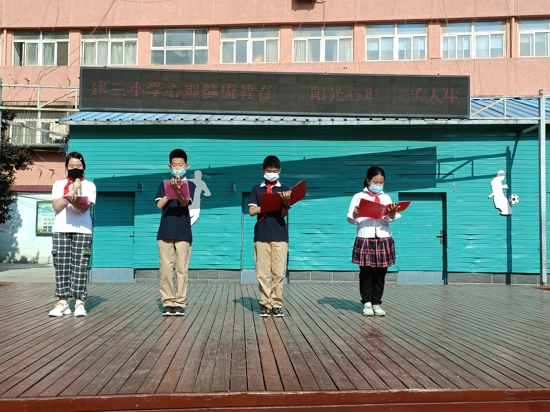 5月23日上午,建三小學舉行了“陽光心理幸福人生”主題升旗課程。課程中,大隊輔導(dǎo)員李翠告訴孩子們?nèi)松凶羁少F的是健康與生命,健康不僅僅是身體健康,還包括健康的心理。在成長的過程中,要正確認識自己,做到“兩不兩要”——不自卑、不自負、要自信、要正確與人交往,做一個擁有健康的心理、陽光的信他,快樂地去享受學習生活。