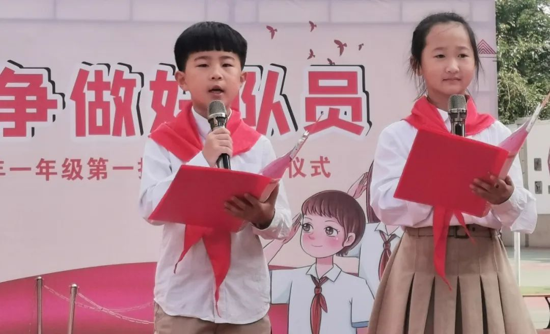 唱隊(duì)歌、佩戴紅領(lǐng)巾、宣誓、呼號(hào)……鮮艷的紅領(lǐng)巾映襯著少先隊(duì)員一張張朝氣蓬勃的笑臉,“小嫩芽們”從現(xiàn)在起正式加入中國(guó)少年先鋒隊(duì)。第一次唱響少先隊(duì)隊(duì)歌,第一次佩戴紅領(lǐng)巾,第一次敬標(biāo)準(zhǔn)的少先隊(duì)隊(duì)禮,第一次在隊(duì)旗下立下錚錚誓言。莊嚴(yán)的儀式和難忘的體驗(yàn)在他們心中播下理想和信念的種子。