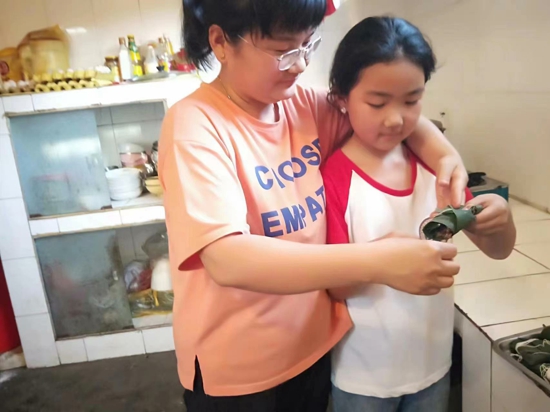 其次假期期間,隊(duì)員們還進(jìn)行了家庭勞動實(shí)踐——包粽子!家長先為孩子演示了粽子的制作過程,詳細(xì)講解了粽子的包法和注意事項(xiàng),對從未接觸過包粽子的同學(xué)來說,這是一個(gè)大挑戰(zhàn)。包粽子講究手法和力度,稍不注意,粽葉就破了。孩子們認(rèn)真觀察,專心實(shí)踐。大家手握細(xì)長的粽葉,折成漏斗形狀,再放上糯米和紅棗,慢慢綁上細(xì)線,制成一個(gè)個(gè)三角形的糯米粽子。雖然大家手法不太熟練,但都能以誠摯的心表達(dá)著對屈原的懷念之情。棱角里,總有歷史的傳承,軟糯間,藏著文化的清香。