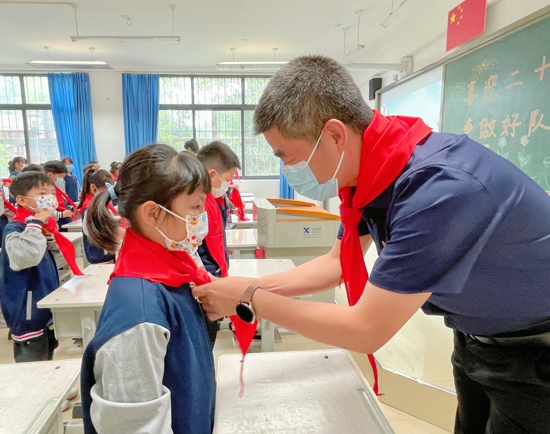 中新河南網(wǎng)6月1日電(吳勇強)為增強少先隊組織力量,引導廣大少先隊員“聽黨話,跟黨走”,繼承和發(fā)揚中國少年先鋒隊的光榮傳統(tǒng),爭做新時代好隊員,5月31日下午,管城區(qū)紫東路小學舉行了“喜迎二十大、爭做好隊員”一年級第一批少先隊員入隊儀式。