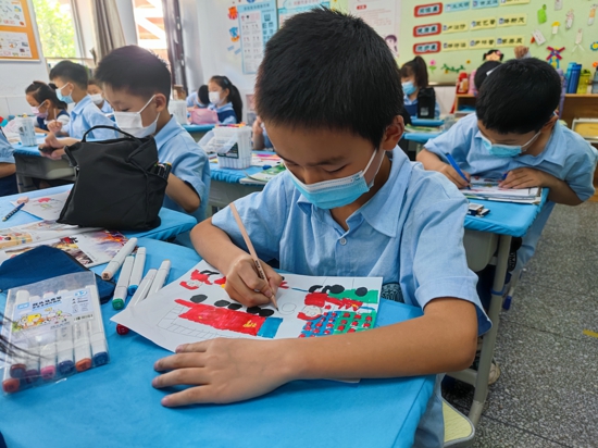 測(cè)評(píng)在各任課老師的監(jiān)督下有序開(kāi)展。學(xué)生們聽(tīng)完考前注意事項(xiàng),認(rèn)真審題,個(gè)個(gè)自信地拿起畫(huà)筆,起稿作畫(huà),一幅幅生動(dòng)的作品誕生了。該校美術(shù)教師楊光表示:美術(shù)能力檢測(cè)既能檢驗(yàn)老師的日常美育教學(xué)質(zhì)量,又能考量學(xué)生的繪畫(huà)能力。“手捧一張張靈動(dòng)的畫(huà),可以感知它的分量,這是最珍貴的藝術(shù)品。天馬行空的想象,會(huì)讓人忍不住驚嘆童真世界的美妙。”李俊杰老師也說(shuō)道。