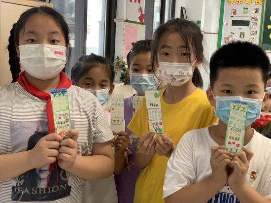 隨后在老師的帶領(lǐng)下,學生們還通過手工制作“綠書簽”,向身邊人進行文明閱讀、綠色上網(wǎng)的宣講,營造文明、清朗、綠色的閱讀環(huán)境。