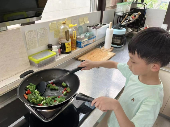 學(xué)生們通過自行采摘和加工,親自動(dòng)手制作菜肴。有的班級收獲了秋葵,學(xué)生們就制作了蒜蓉秋葵、清炒秋葵等系列菜肴;有的班級收獲了茄子、圣女果,學(xué)生們就制作了油炸茄子、紅燒茄子等系列菜肴,還用圣女果創(chuàng)作蔬果拼盤;還有的班級收獲了辣椒,學(xué)生們制作了辣椒炒肉片、青椒雞蛋等菜肴。