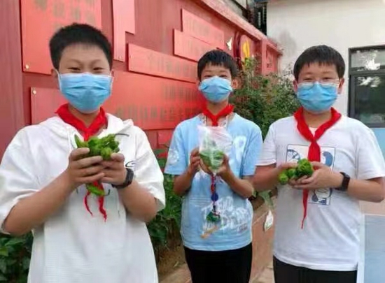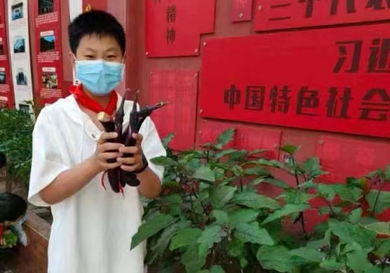 在此前的4月份“種植節(jié)”上,各個(gè)班級在自己的種植園里播下了種子,有秋葵、辣椒、圣女果、小白菜、甜瓜等,學(xué)生進(jìn)行定期觀察和記錄。在學(xué)生們的精心培育和照料下,現(xiàn)在各個(gè)班級的種植園內(nèi)都碩果累累,校園內(nèi)洋溢著豐收的喜悅。