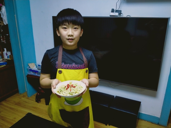 五年級(jí)賀耀弘分享道:“在班會(huì)課上,我了解到了以前勞動(dòng)人民有吃頭伏餃子的習(xí)俗。于是,我在媽媽的指導(dǎo)下開始學(xué)習(xí)和面、盤餡兒、包餃子,解鎖了多項(xiàng)新技能。吃著餃子,享受著自己的勞動(dòng)成果,果然有一種不同尋常的美。”