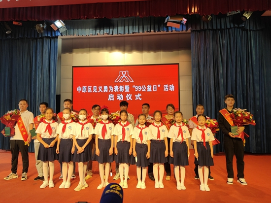 中原區(qū)百花藝術(shù)小學少先隊員代表參加中原區(qū)見義勇為表彰活動