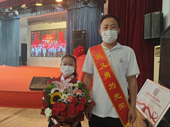 中新河南網(wǎng)8月7日電(吳勇強郭蘭蘭)小學階段是孩子人生觀、價值觀培養(yǎng)的關(guān)鍵時期。8月6日上午,鄭州市中原區(qū)百花藝術(shù)小學10名少先隊員參加了中原區(qū)見義勇為表彰暨“99公益日”活動啟動儀式,并作為全區(qū)少先隊員代表,向見義勇為表彰個人及家屬代表獻上鮮花;用莊嚴的隊禮,表達了全區(qū)少先隊員對見義勇為者的尊重與敬愛。