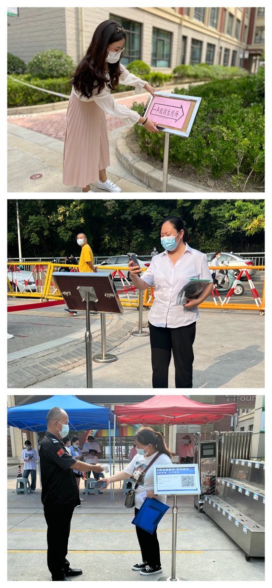 報名當(dāng)日,參與招生工作的教師提前到達(dá)崗位,以飽滿的精神狀態(tài),用最誠懇的態(tài)度、最高效的服務(wù),迎接家長的到來。學(xué)校安保部門嚴(yán)格按照防疫常態(tài)化管理,合理規(guī)劃入校路線,測量體溫,做好個人防護(hù)提醒,為新生報名保駕護(hù)航。