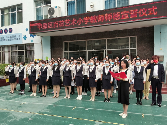 校長(zhǎng)宮江霞帶領(lǐng)全體教師進(jìn)行師德宣誓