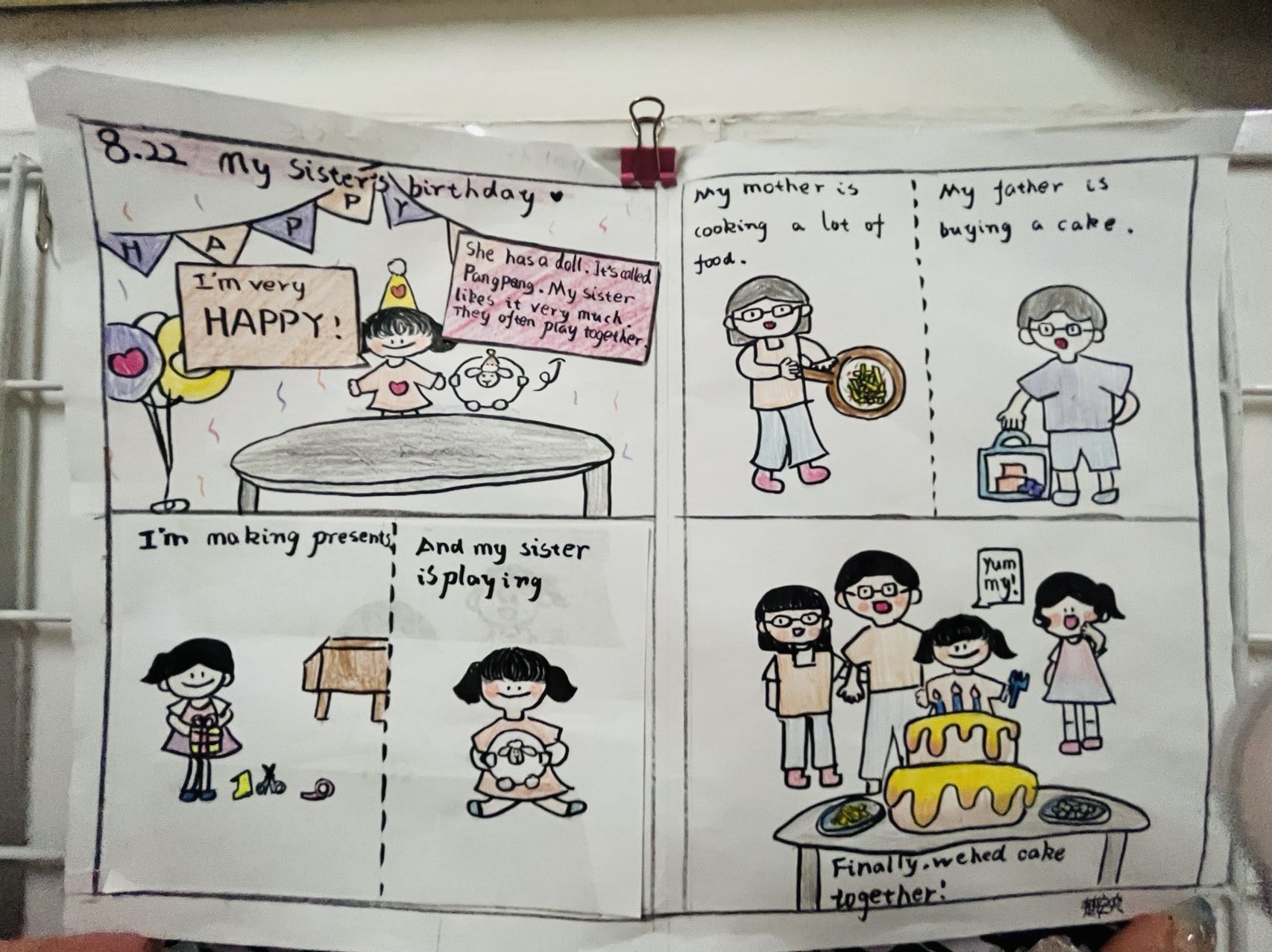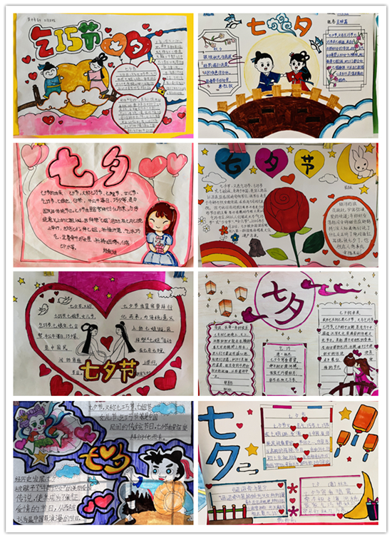 當(dāng)暑假遇上七夕,孩子們自主創(chuàng)造七夕小報(bào),加深了孩子們對(duì)傳統(tǒng)節(jié)日的理解,一張張小小的畫(huà)紙經(jīng)過(guò)孩子們靈巧的雙手,一瞬間就變得色彩斑斕,妙趣橫生。