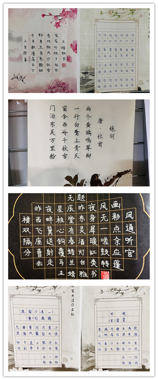 一橫一豎,規(guī)行矩步,一撇一捺,皆有章法,一筆一劃,起伏挫頓,先意后筆,翰墨有神。孩子們堅(jiān)持每天練字,于無(wú)聲中提升了自己,讓我們一起來(lái)欣賞他們的作品吧。