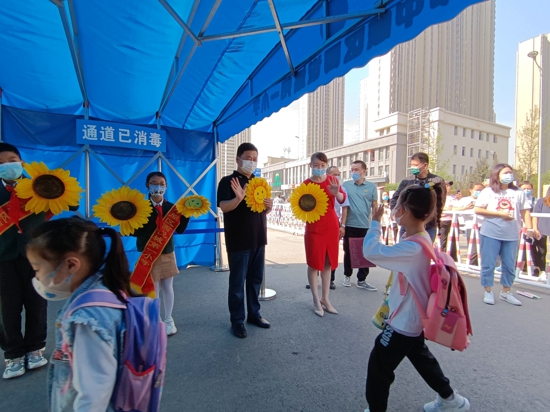 學(xué)校門口領(lǐng)導(dǎo)歡迎一年級(jí)悅寶貝