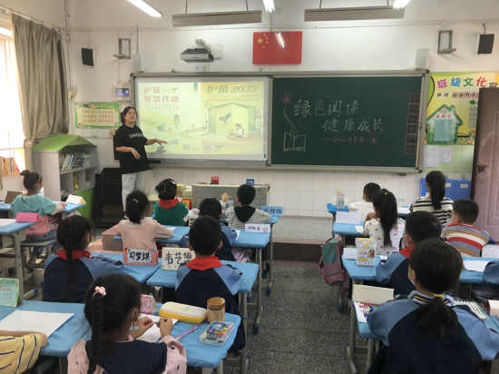 “每一個孩子都是一株幼苗,每一株幼苗都希望被精心呵護,溫柔以待。”二二班班主任張玲老師說道。同時,張玲老師還表示將通過微信群向學生家長宣傳綠色閱讀,提倡親子共讀,讓更多的學生家長一起參與到“綠色閱讀”的行列,和孩子一起快樂成長。